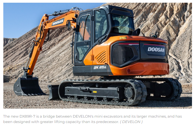 DEVELON (formerly Doosan Infracore North America) has introduced the DX89R-7 mini excavator. This next-generation, -7 Series mini excavator is now available in the United States and Canada.