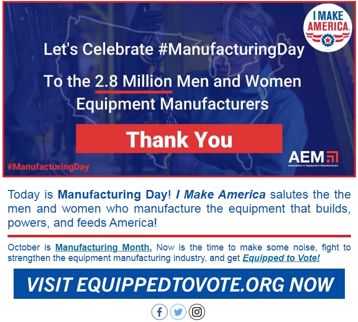 October is Manufacturing Month. Now is the time to make some noise, fight to strengthen the equipment manufacturing industry, and get Equipped to Vote!